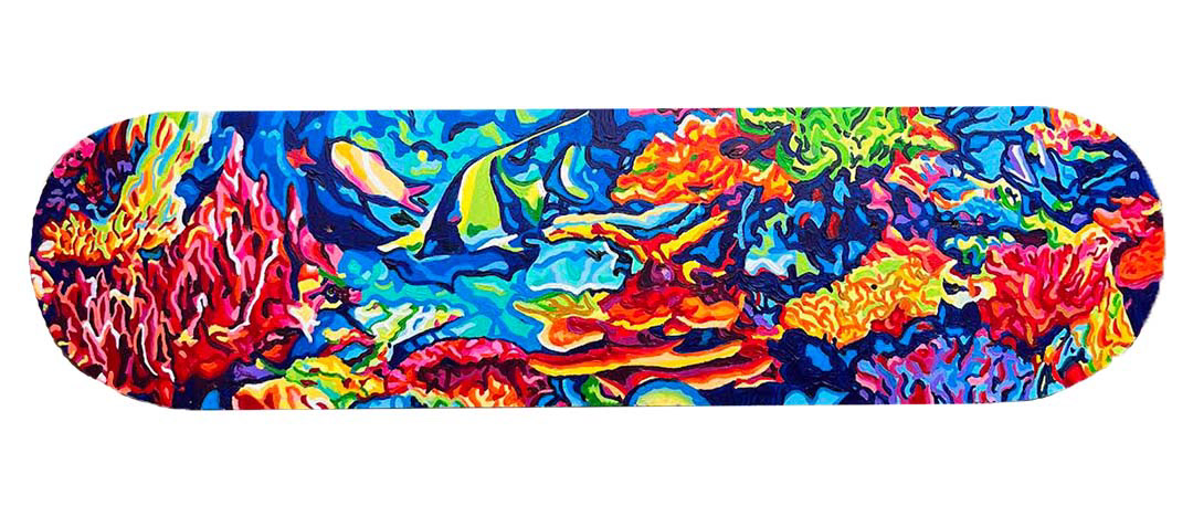 Hand-painted custom skateboards inspired by colour, joy, and movement.
