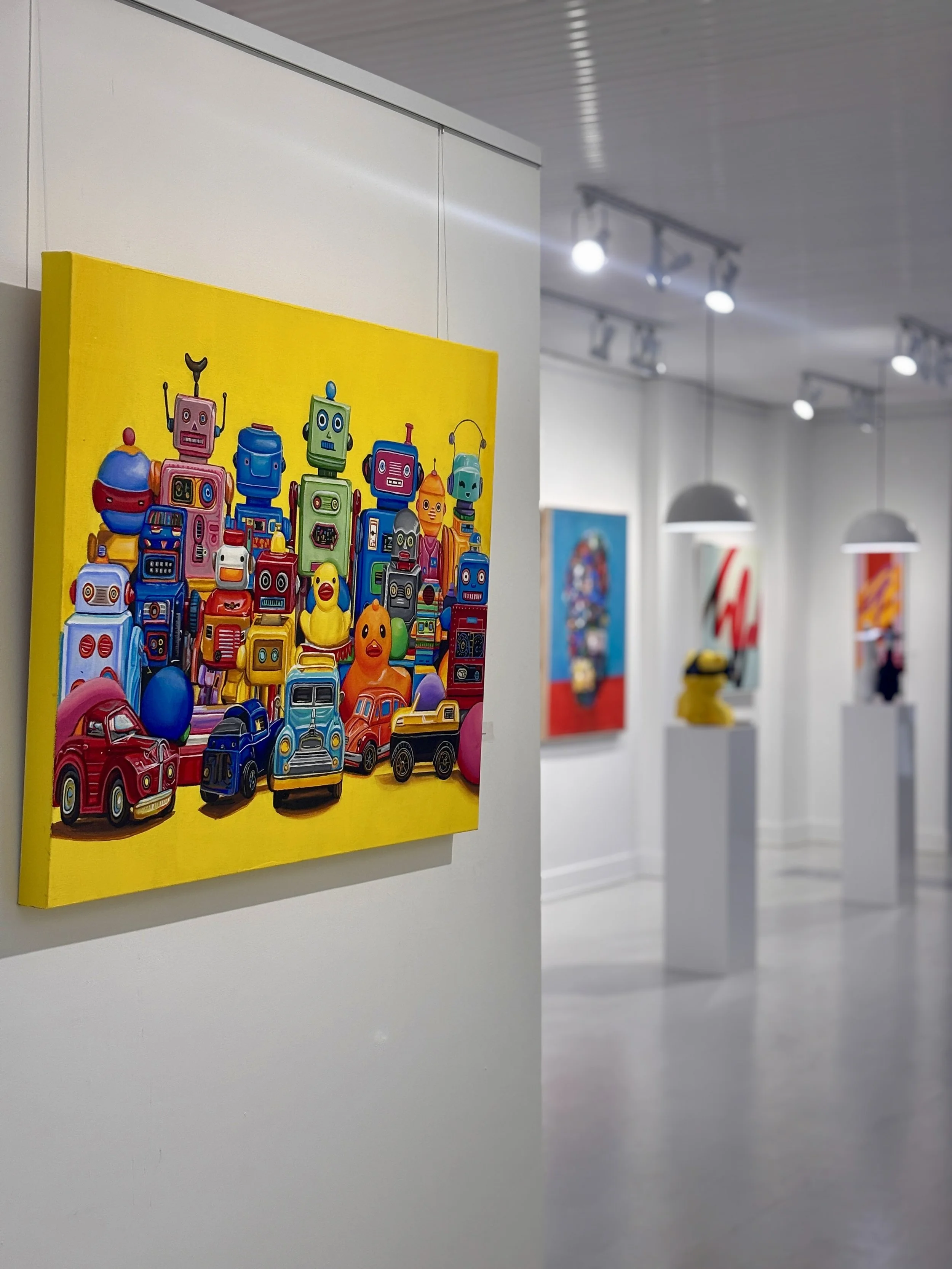 With a focus on dynamic, colourful and captivating forms, Toronto artist Nicole Dimt takes everyday life, and adds elements of nostalgia, curiosity, joy, and wonder. Her works allow us to tap back into our inner child, and get lost in waves of endless colour, playfulness, and fun.